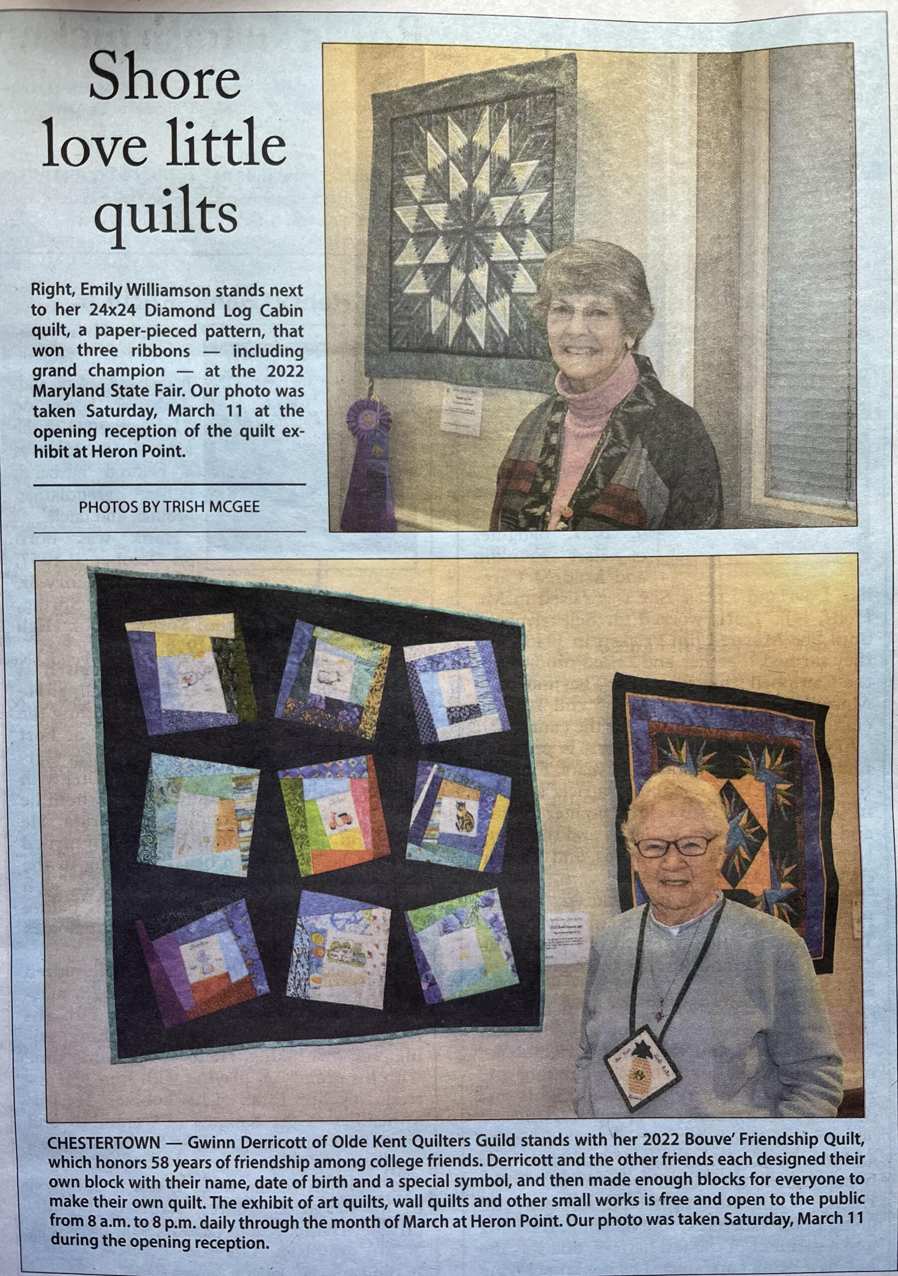 Our Shore Love Little Quilts Show will be held at Heron Point of Chestertown from Sunday, September 7th – Monday, October 13th.
